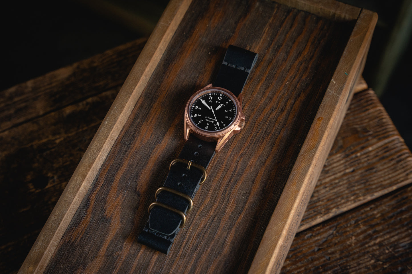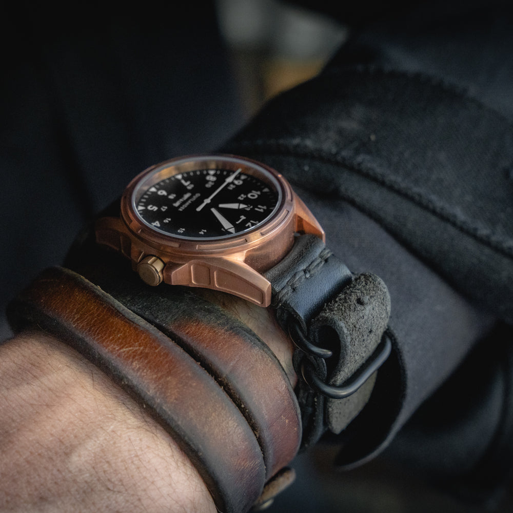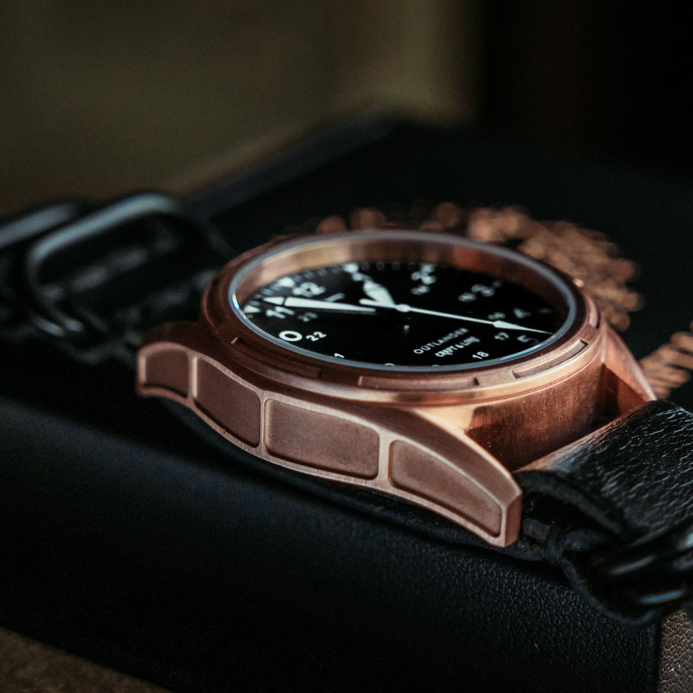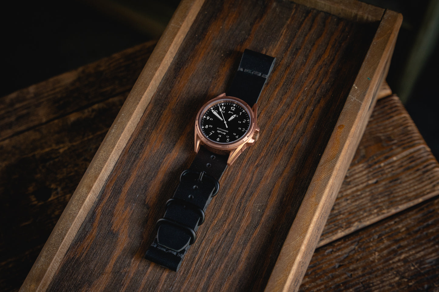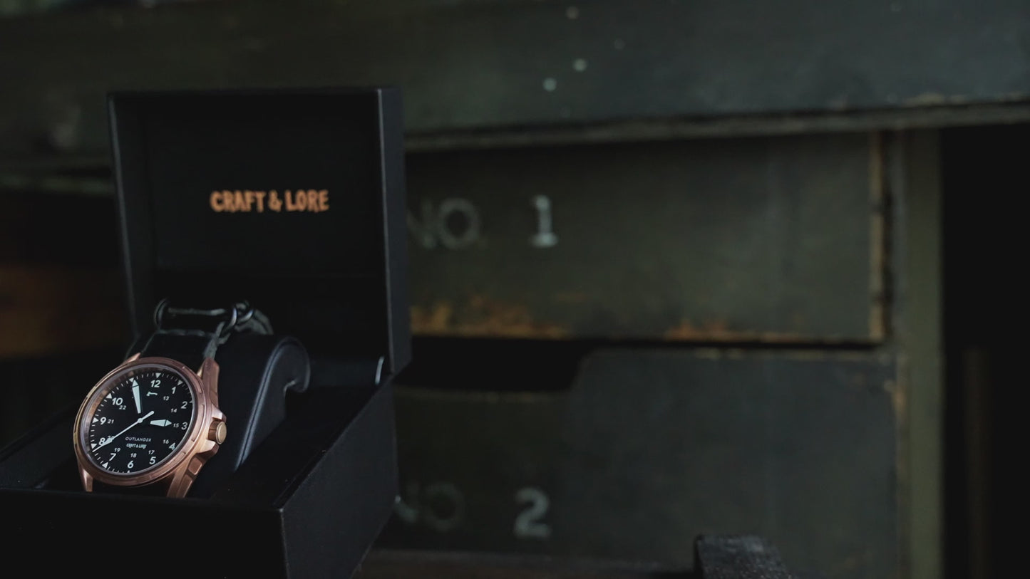 This first edition Craft and Lore watch naturally had to be bronze. With this design, we wanted to blend readability, simplicity, and rugged class. Only 97 produced, each with an engraved edition number on the case back.