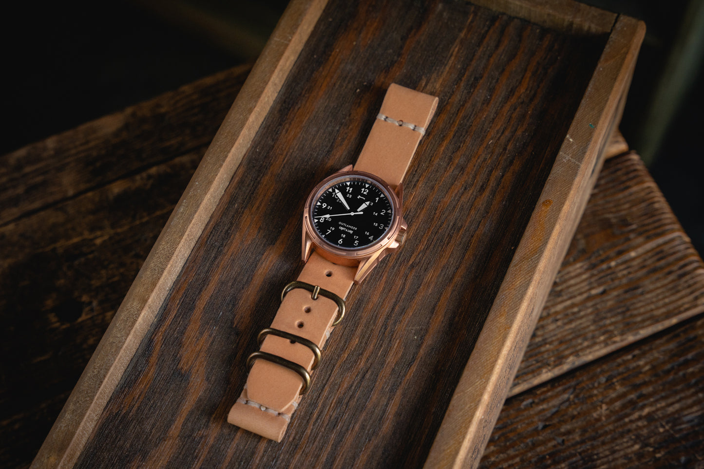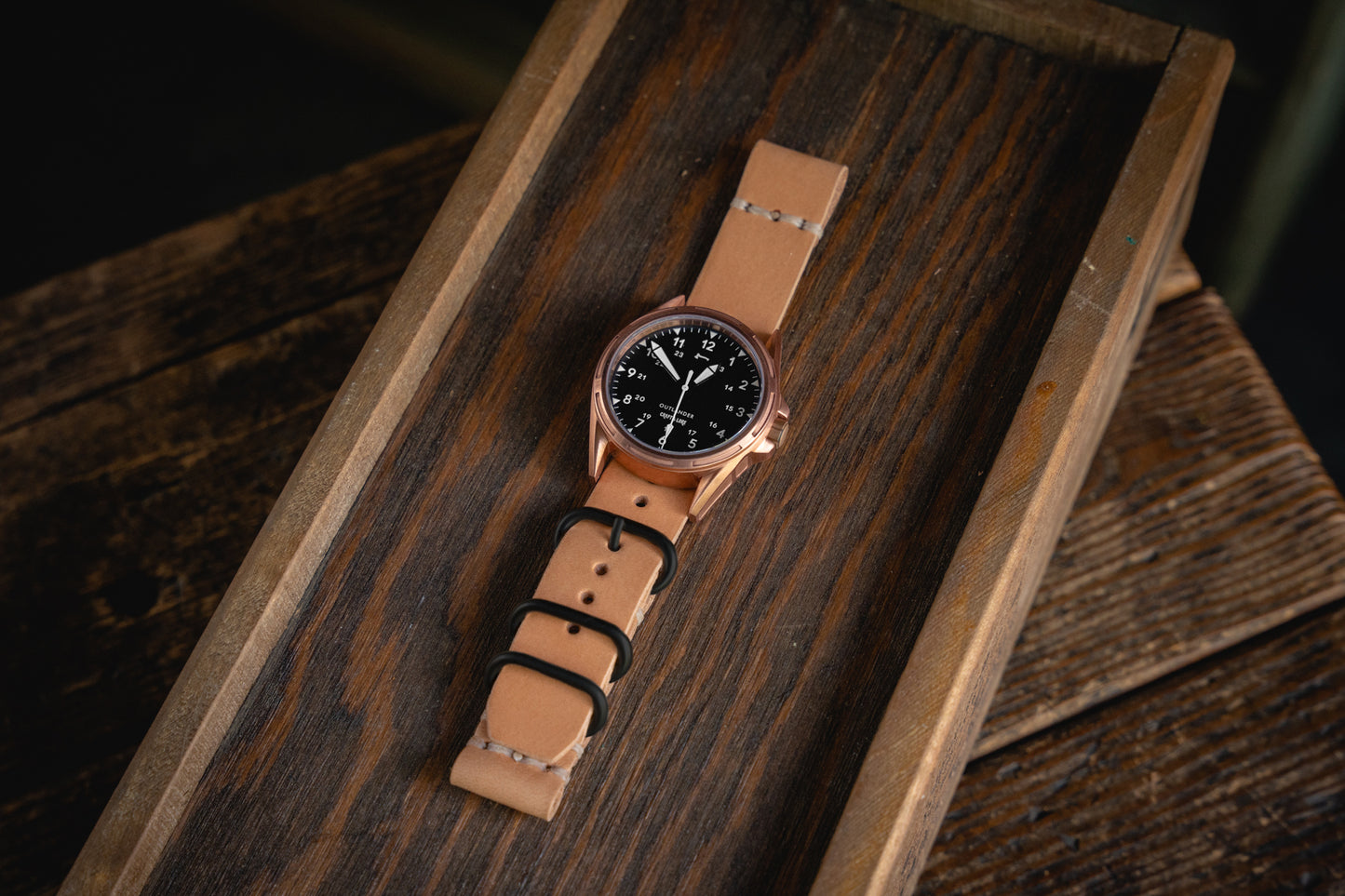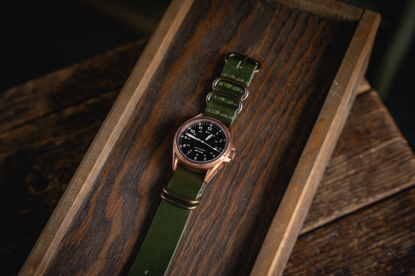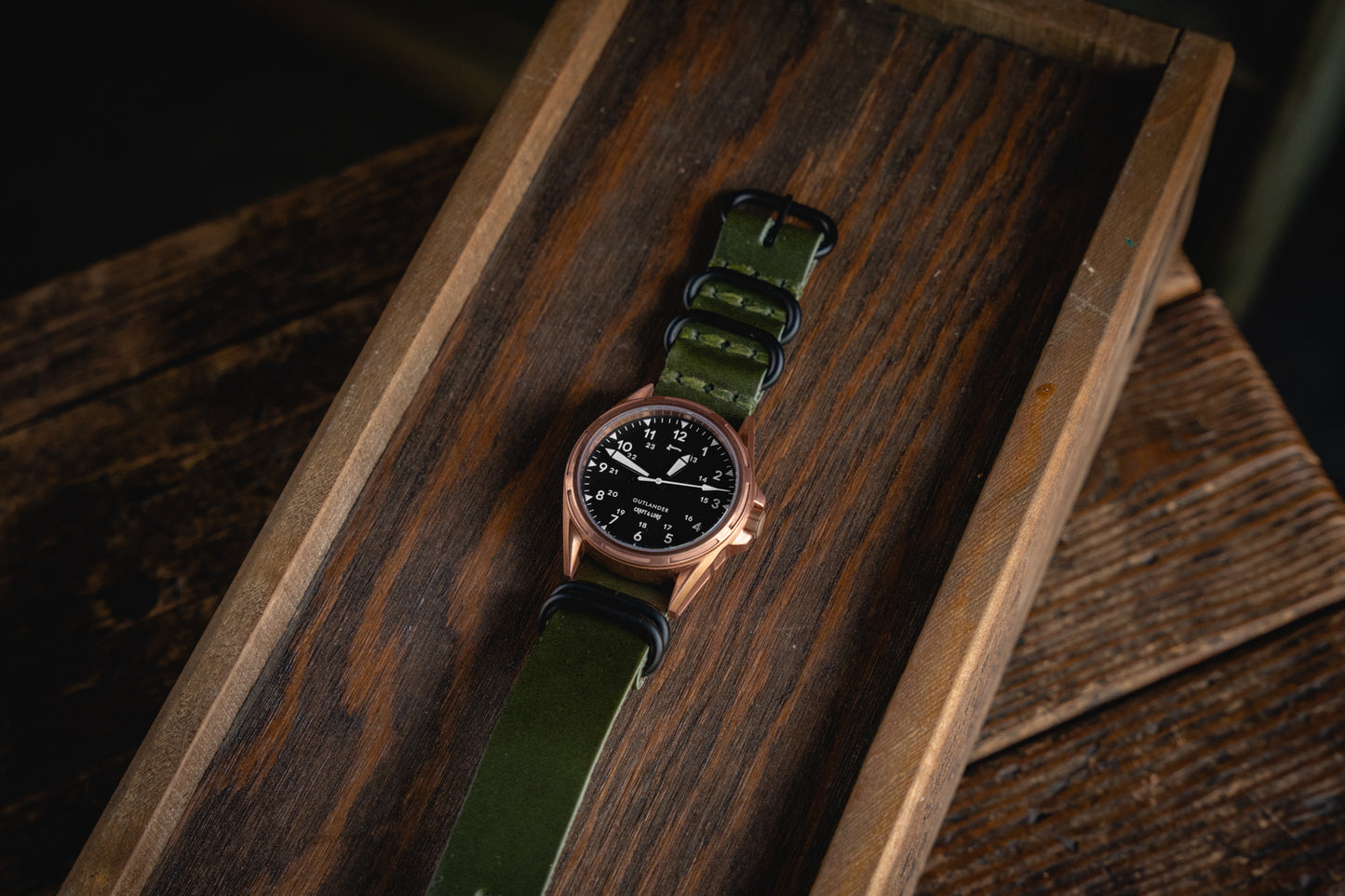 This first edition Craft and Lore watch naturally had to be bronze. With this design, we wanted to blend readability, simplicity, and rugged class. Only 97 produced, each with an engraved edition number on the case back.
