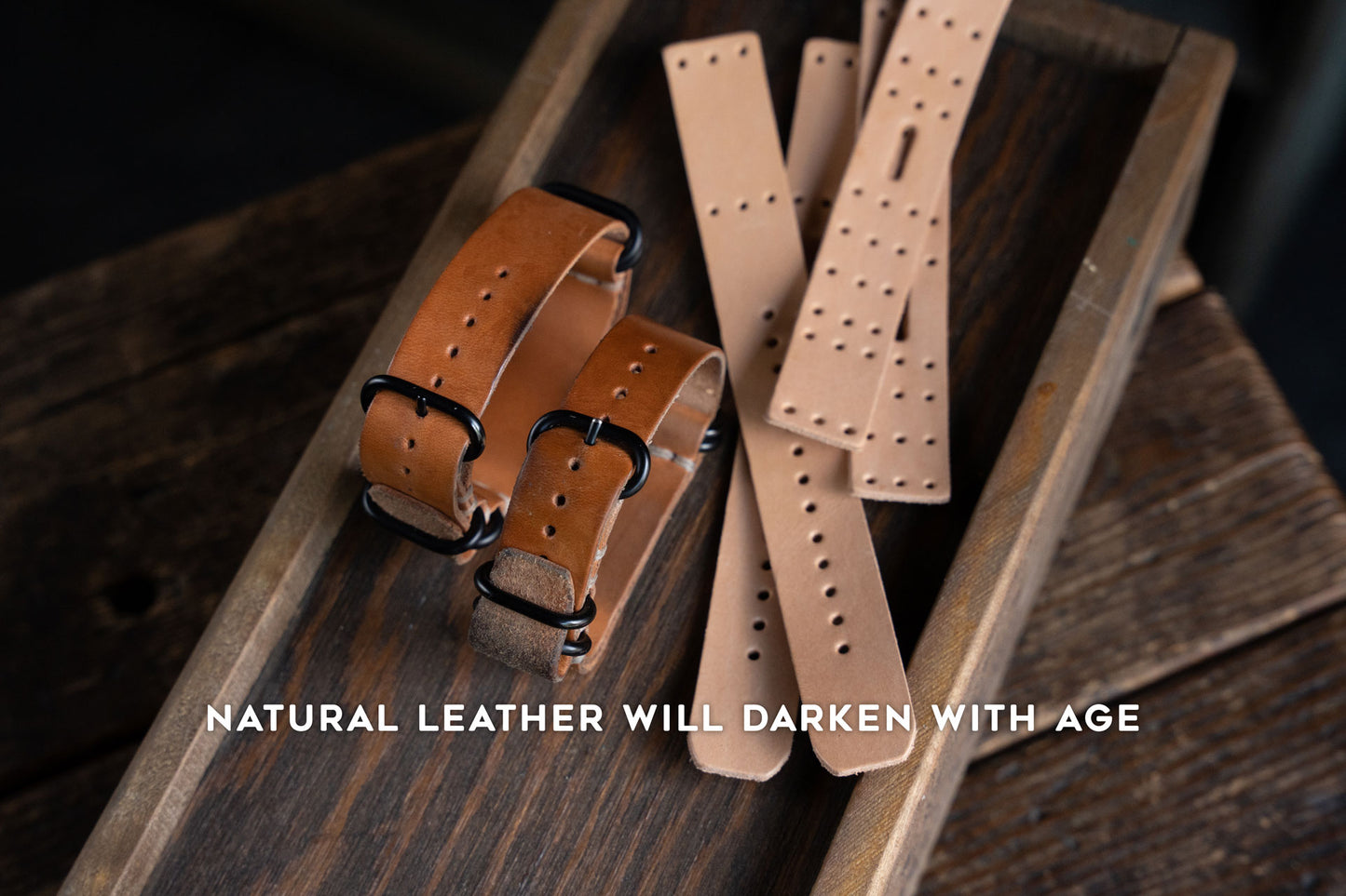 Expect the bronze case and leather strap to darken and develop a rich beautiful character. Choose your leather strap color and hardware to complete the look you prefer.