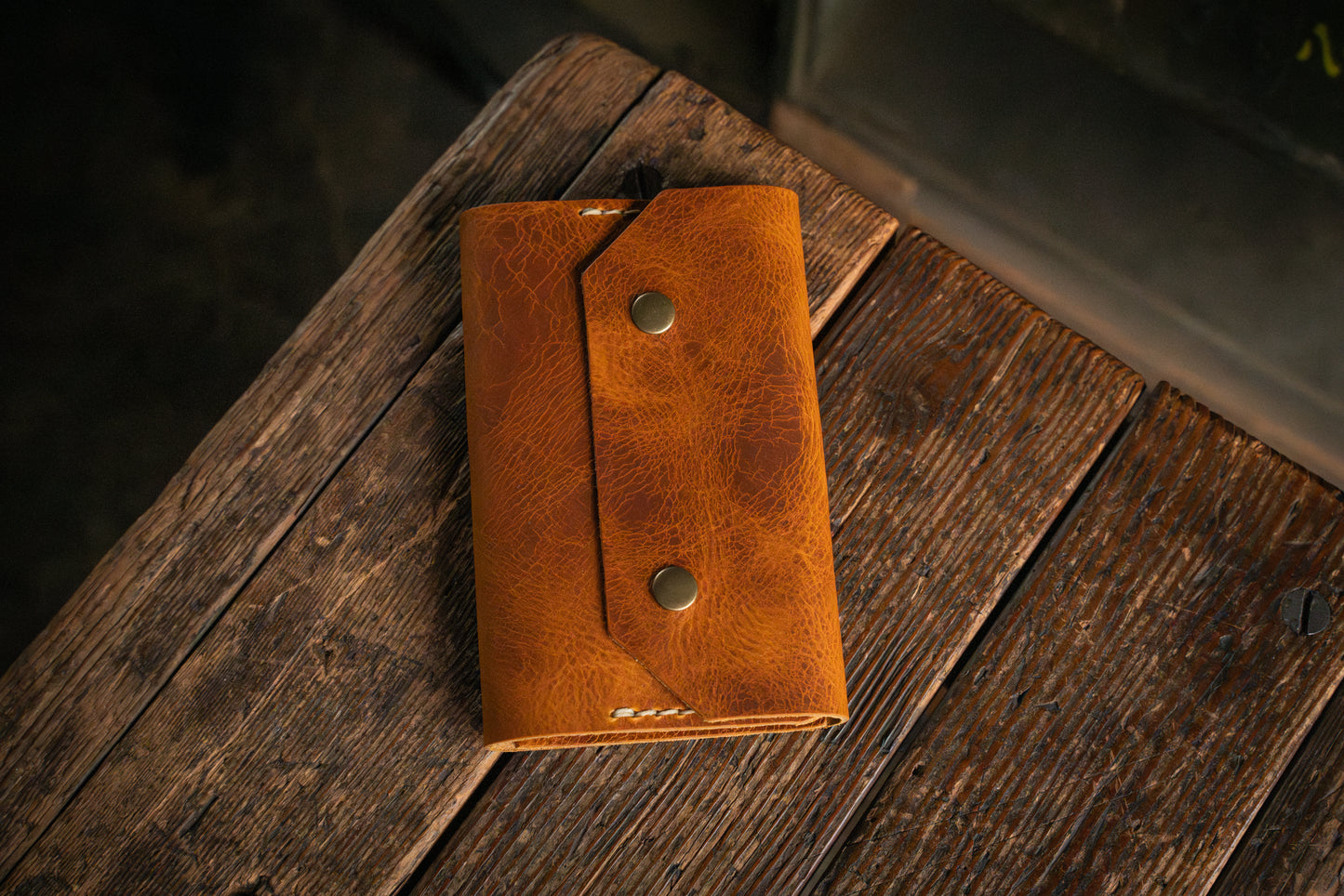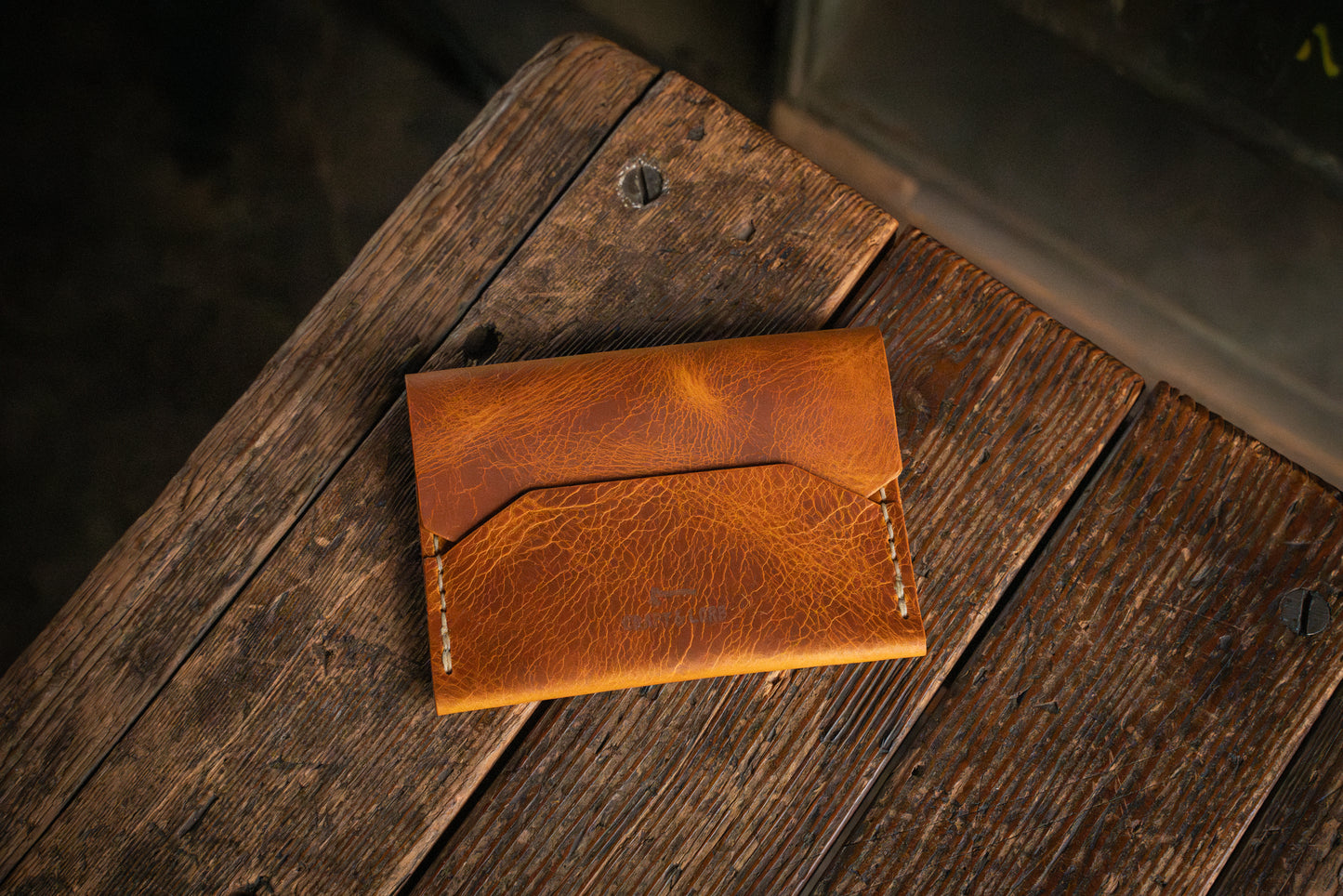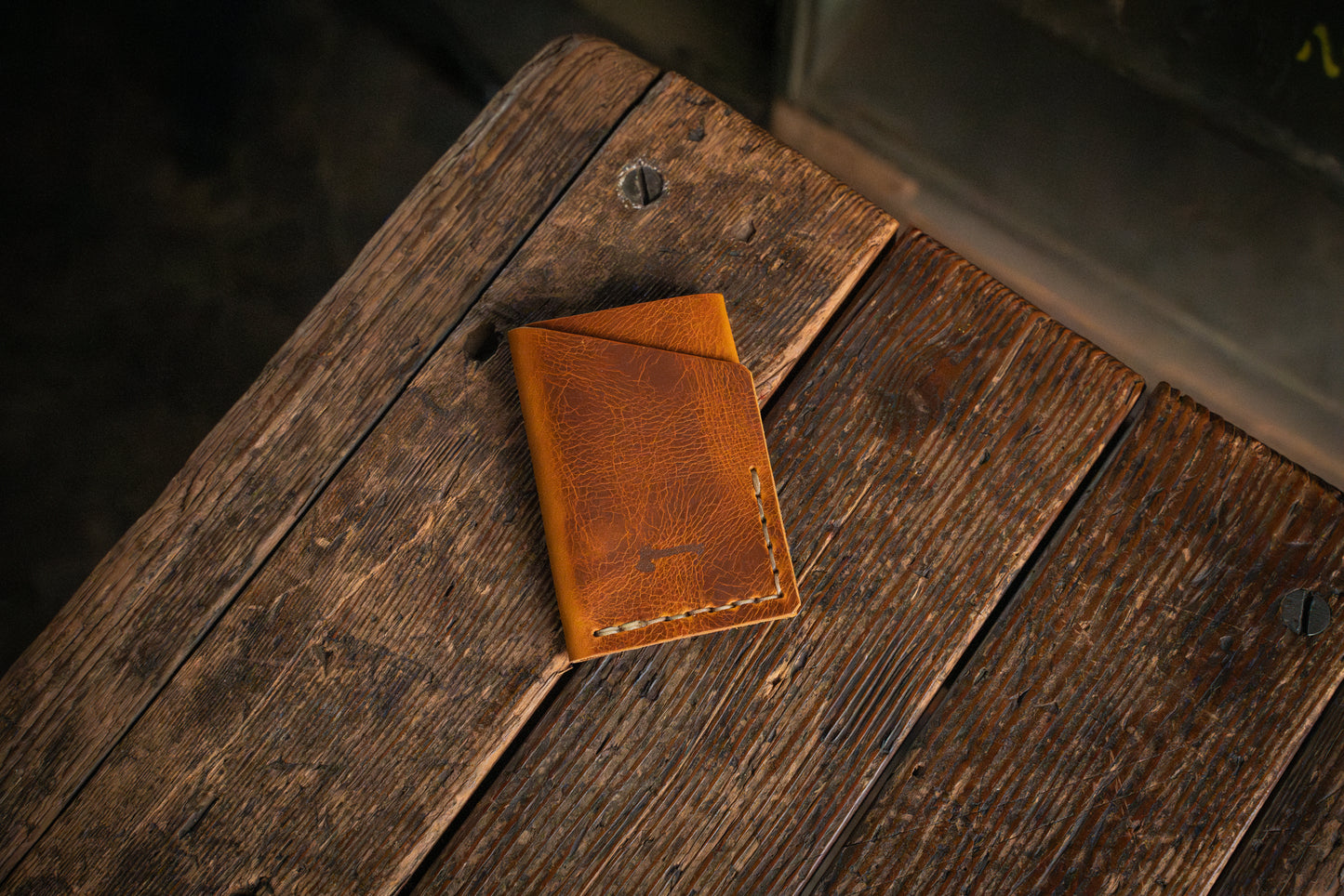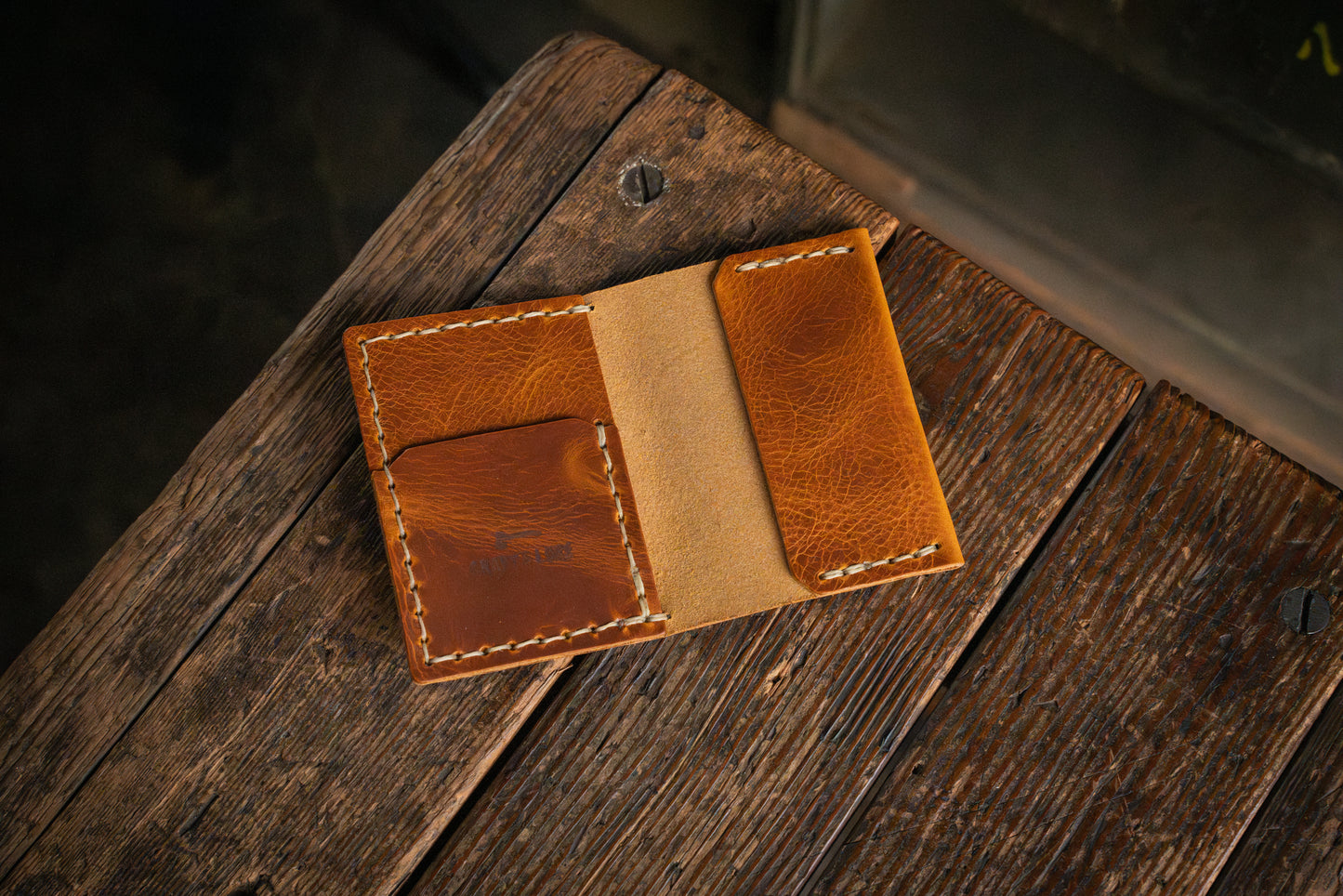 A limited run of our most popular wallet models using a very unique leather. Waxy is an Oiled pullup veg tanned leather from Baladassi Carlo tannery of Italy, with a medium temper and split to 3.5 - 4oz (1.6-1.4mm) thick. If you like Pueblo leather, this option from Baladassi is just as wonderful.