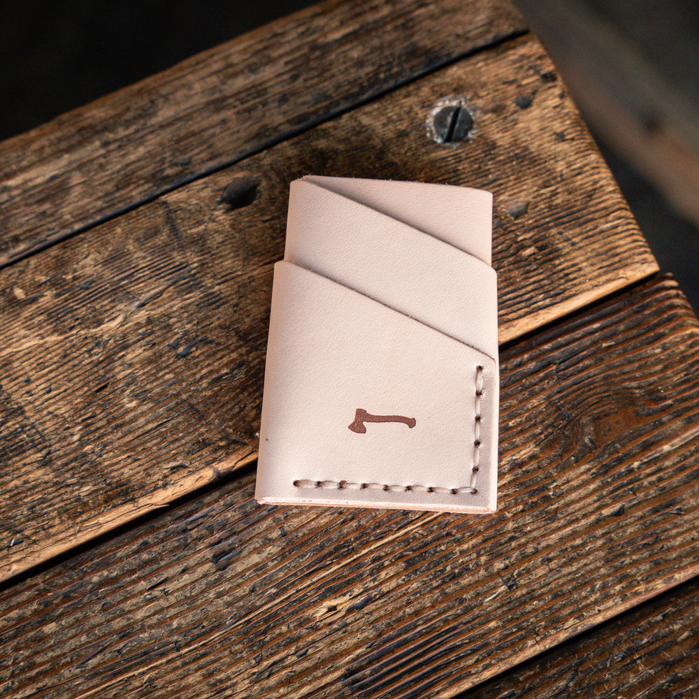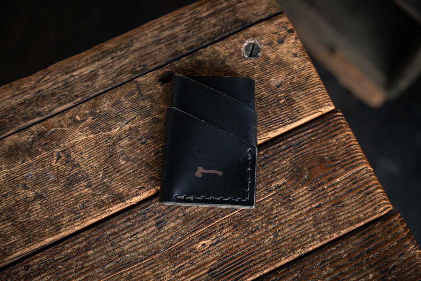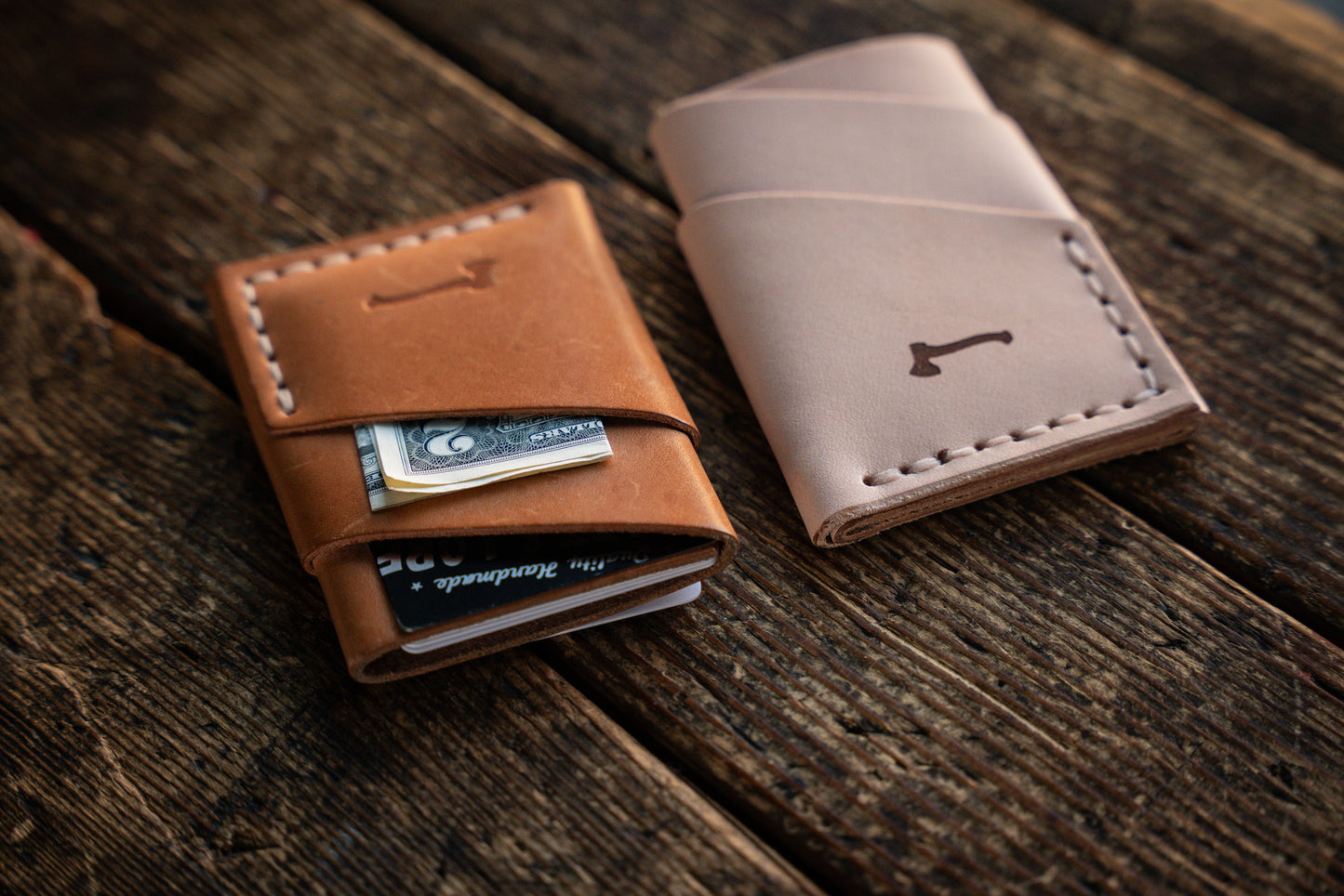 This original Craft and Lore design uses a single piece of leather wrapped around itself, with only the needed stitching, to complete a beautiful minimalist design. Pack your main cards in an outside pocket, your cash in the short pocket, and the lesser used cards inside the center port. The Port Wallet fits comfortably in the front or rear pant pockets as well as in the palm of your hand.