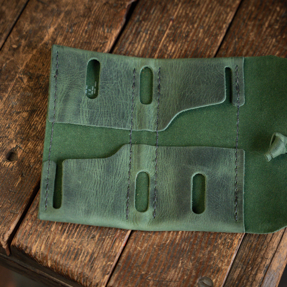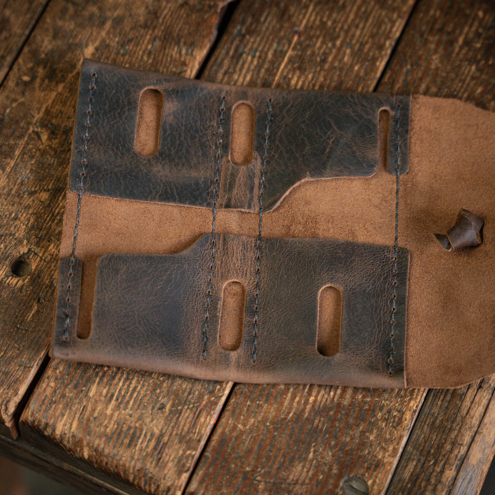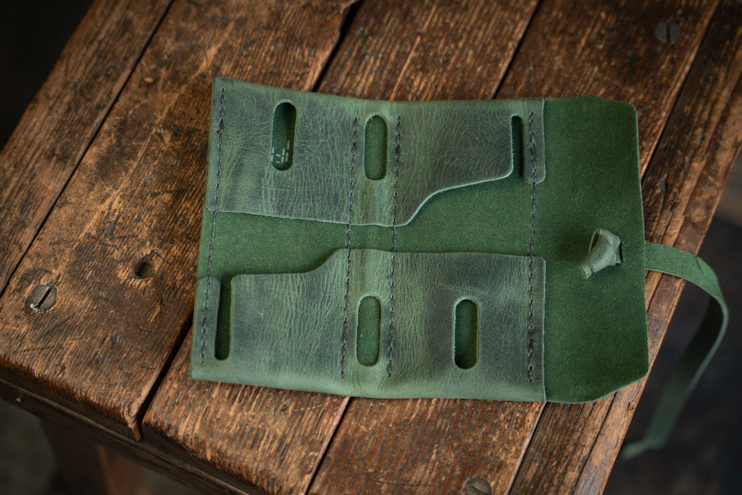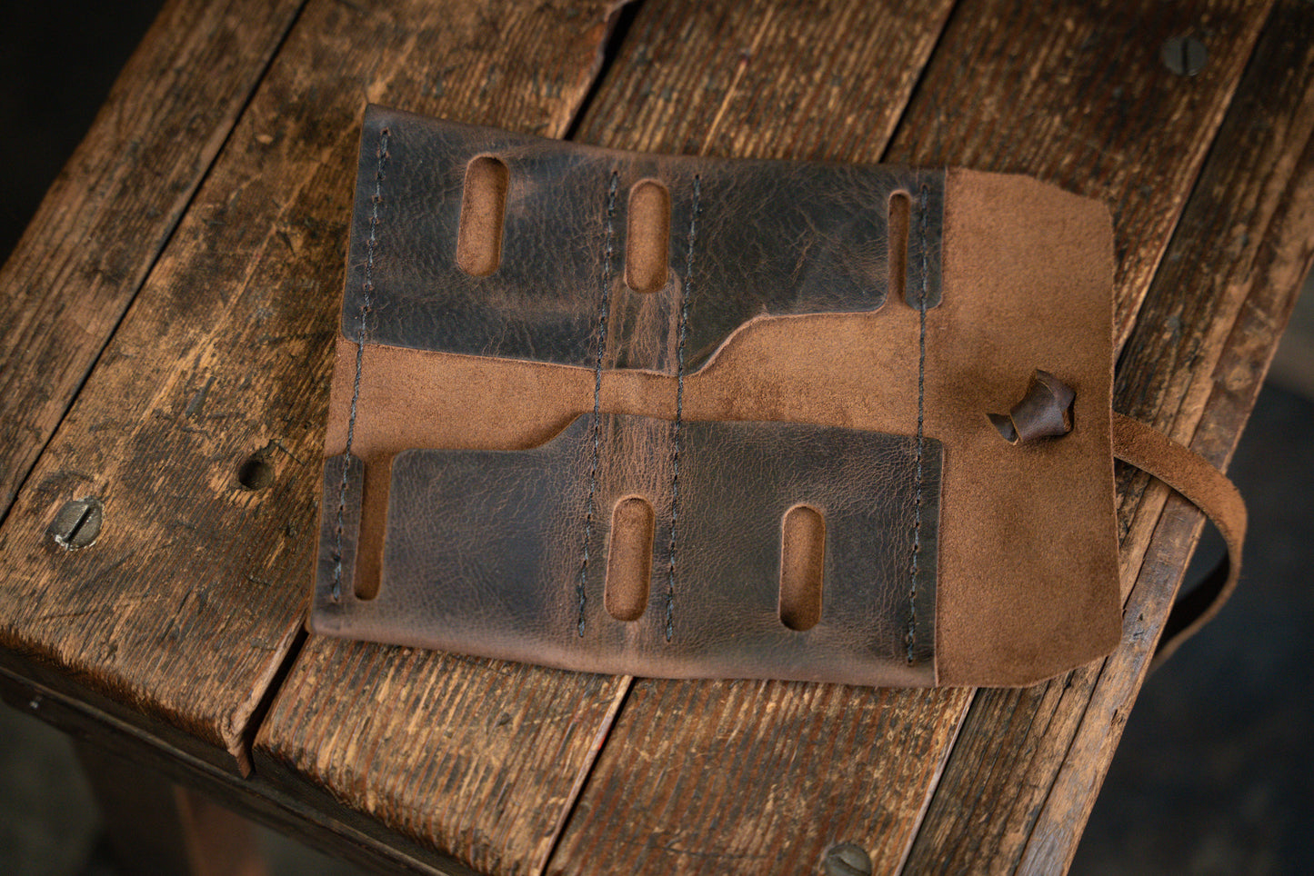 This compact leather watch pack can hold 2 watches and a spring bar tool in a classic roll with tie wrap. Perfect for professionals who wish to travel their dressy time piece alongside their casual watch. Expect a beautiful patina to develop over time, as the leather gets better with age. Check out our Watch Straps.
